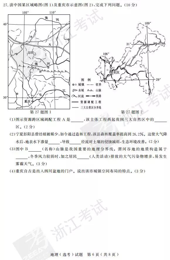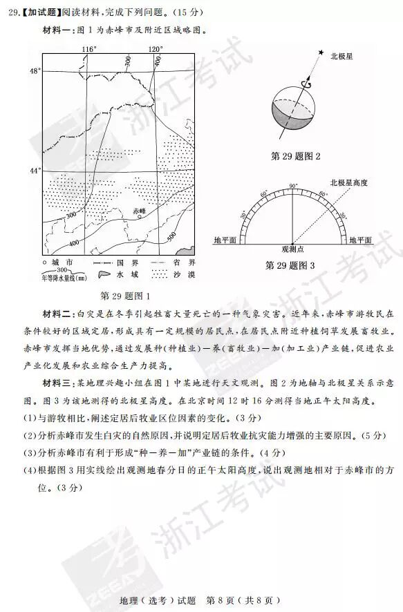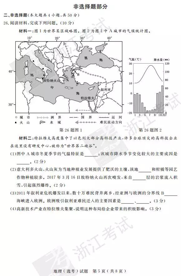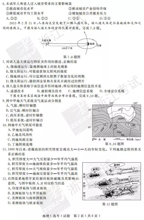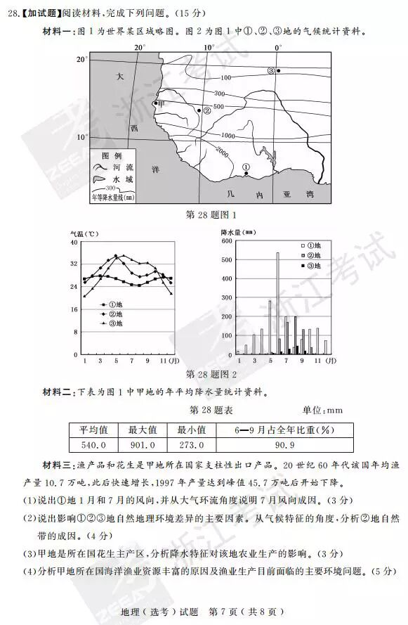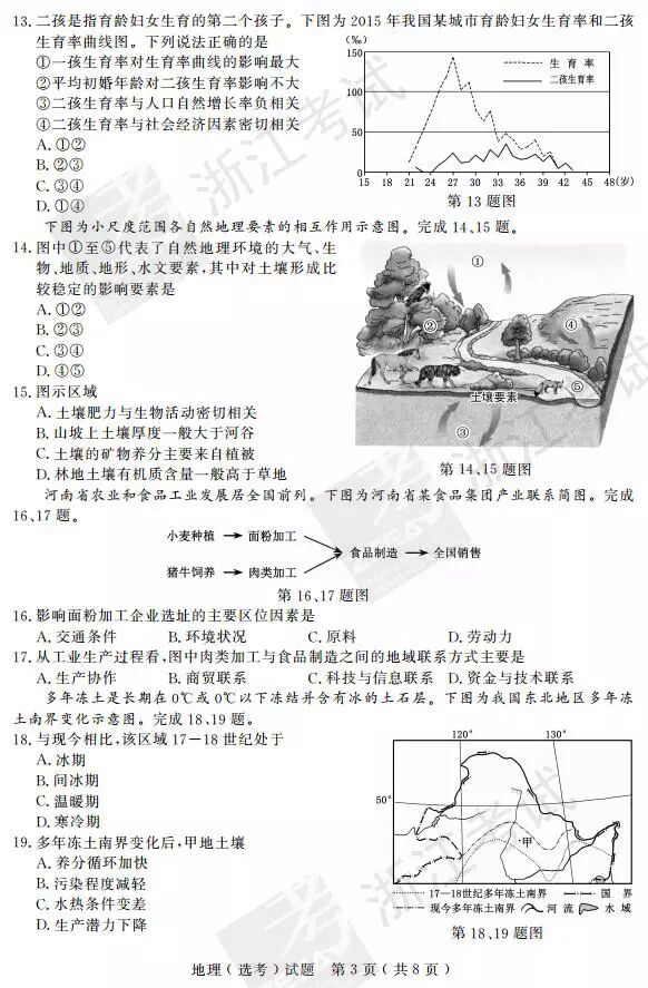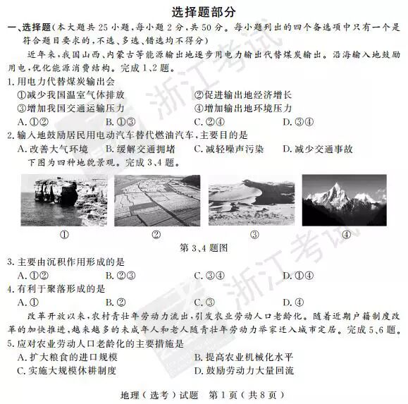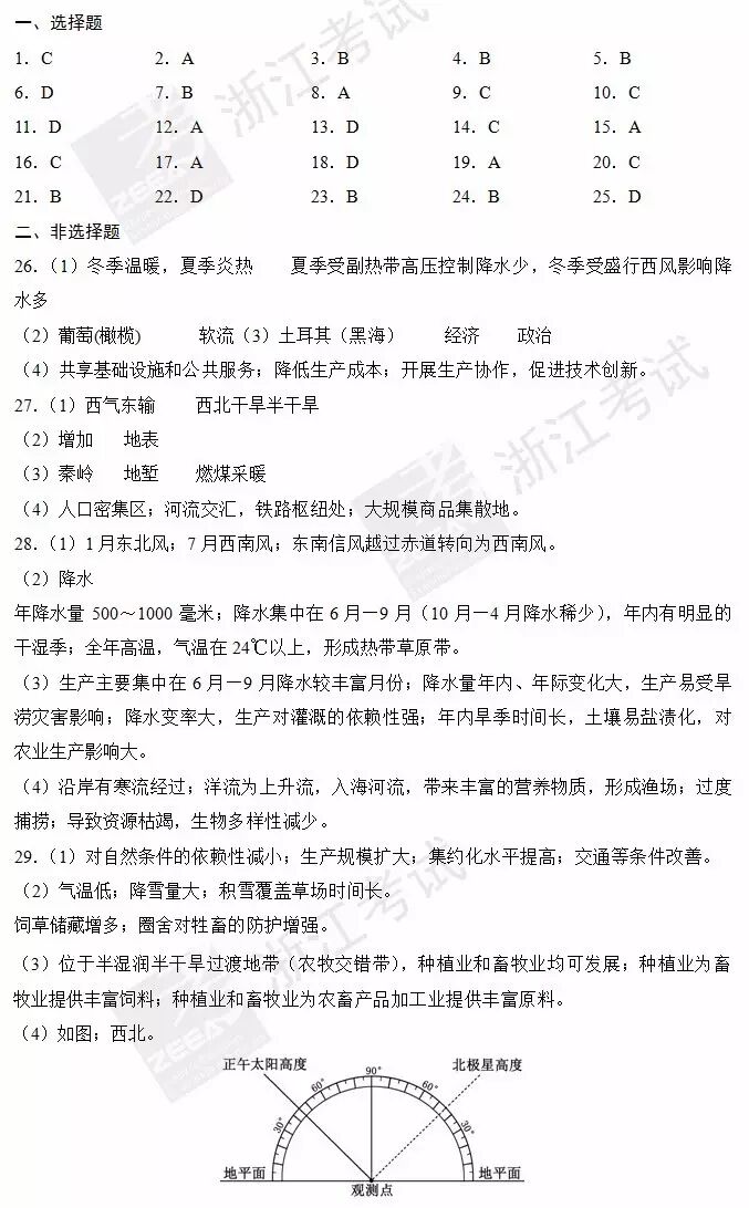 2017年4月浙江学考选考地理答案