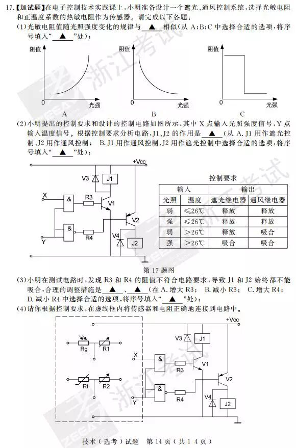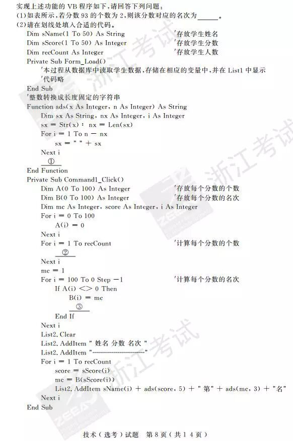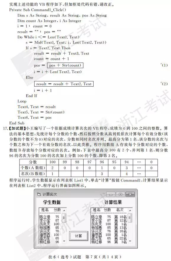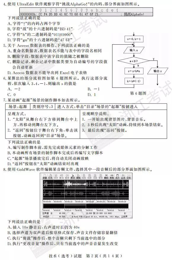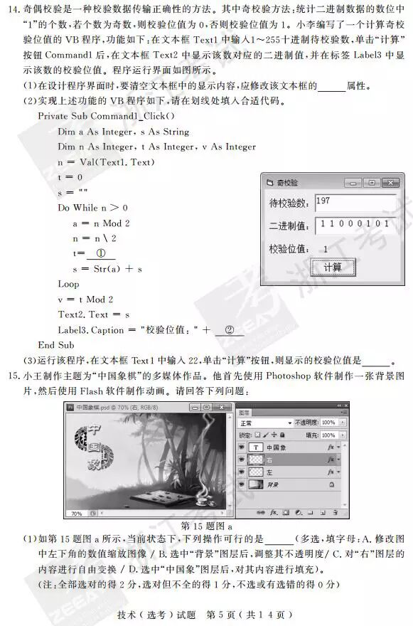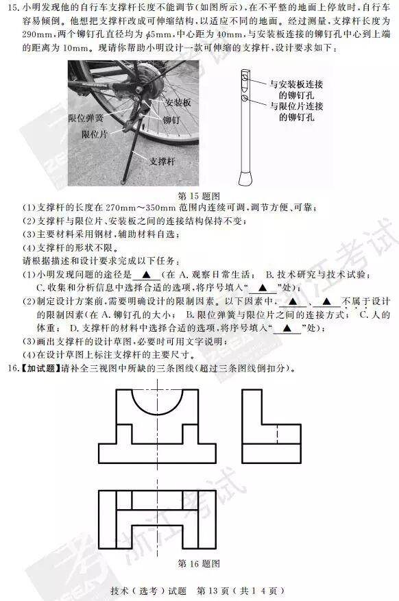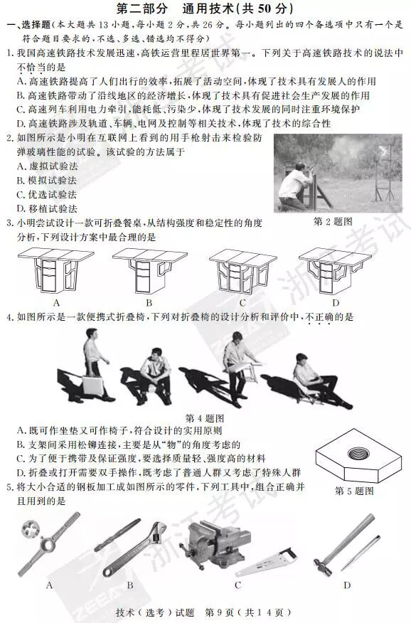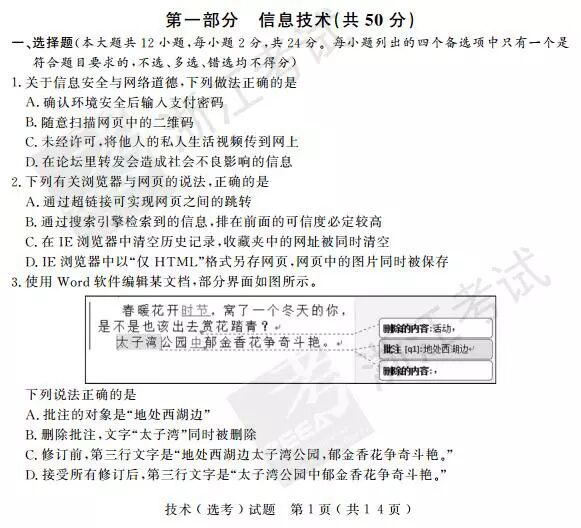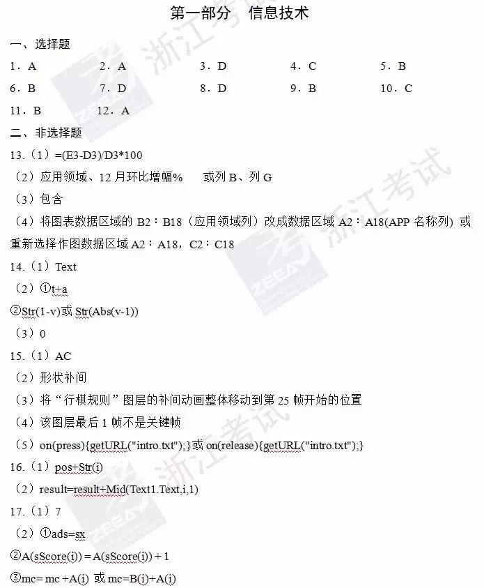 2017年4月浙江选考技术(信息技术 通用技术)答案