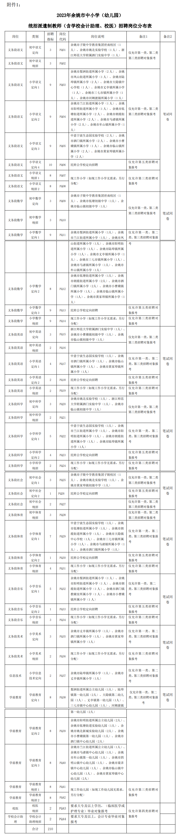 附件1:2023年余姚市中小学(幼儿园)统招派遣制教师(含学校会计助理、校医)招聘岗位分布表.png