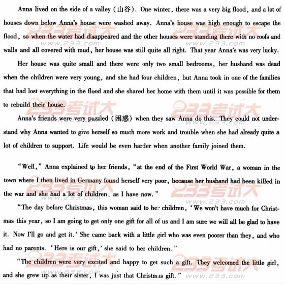 54. Why were Anna's friends puzzled when she shared her house with a family that had lost everything? (2分)