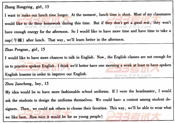 Some students have written to me about our school life or roles. Now I'm writing to tell you what I think about your ideas. To Zhang Hongying, I'd like to say