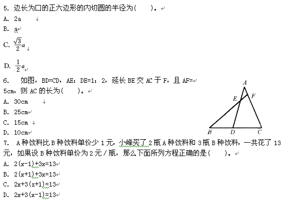 一、单项选择题(在每小题的四个备选答案中。选出一个符合题意的正确答案。并将其选项写在题干后的括号内。本大题共5小题。每小题l分。共5分)