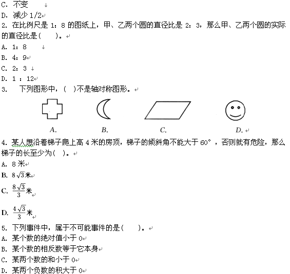 一、单项选择题(在每小题的四个备选答案中,选出一个符合题意的正确答案,并将其选项写在题干后的括号内。本大题共5小题。每小题1分,共5分)