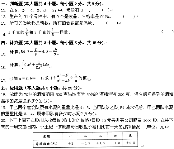 20.解:(1)星期二收盘价为25+2-0.5=26.5(元/股)。
