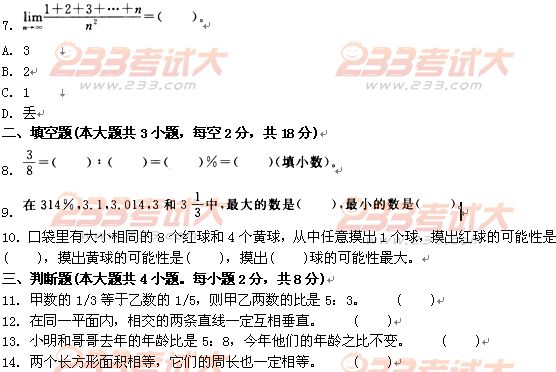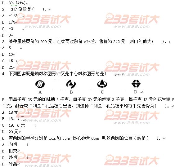 一、单项选择题(在每小题的四个备选答案中,选出一个符合题意的正确答案,并将其选项写在题干后的括号内。本大题共5小题,每小题1分,共5分)